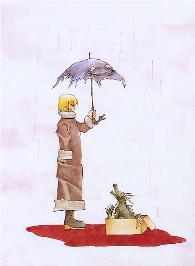 少女がさしている傘がお気に入り。こんなの売ってたら買うね、俺。
